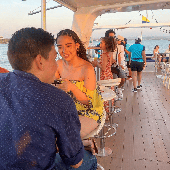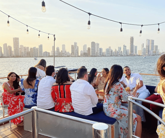 Disfrutarán de la relajante pero a su vez emocionante navegación por la BahÃa de Cartagena de Indias. Acompañado de buena música mientras disfrutan de un cóctel, o bien de un refresco y un delicioso aperitivo en un ambiente mágico durante la puesta del sol y el encendido de las luces espectacular de la ciudad de Cartagena.