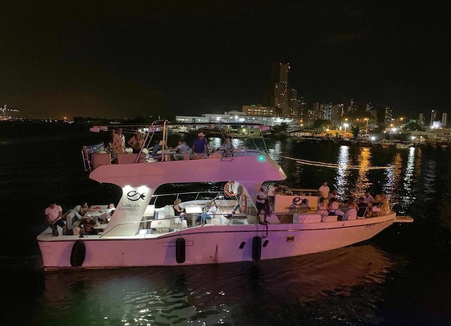 Cena Sibarita Express plan nocturno navegando por la bahÃa de Cartagena con servicio de cena.