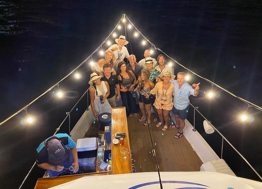 Mientras navegamos por la bahÃa de regreso a Cartagena, podréis contemplar el paisaje nocturno o bailar al ritmo de la música para despedir la noche por todo lo alto.