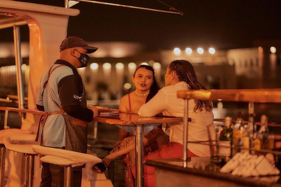 El paseo nos llevará hasta BocaGrande, donde la bahÃa se une al mar Caribe. Desde aquà tendréis las mejores vistas de la ciudad y podréis admirar las luces de los rascacielos y el centro histórico de Cartagena. ¡El entorno ideal para una cena romántica!